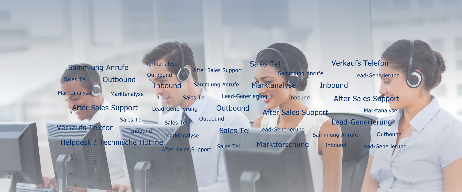 Wir sind ein strategisches Call Center und agieren in allen Bereichen, die in der heutigen Zeit zu einem professionellen Dienstleister in dieser Branche gehören. Unsere Dienstleistungenumfassen unter anderem Inbound, Outbound, Vertrieb, Verkauf, Social Media, Marktanalysen und vieles mehr.